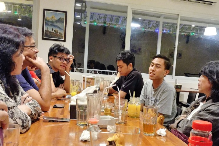 Malam, 11 Januari 2020 di Sentul, memanfaatkan waktu yang sempit untuk bertemu kawan/anak kita yang akan kembali ke US untuk studi. Sambil makan enak… enak karena -apalagi- makan bersama-sama.